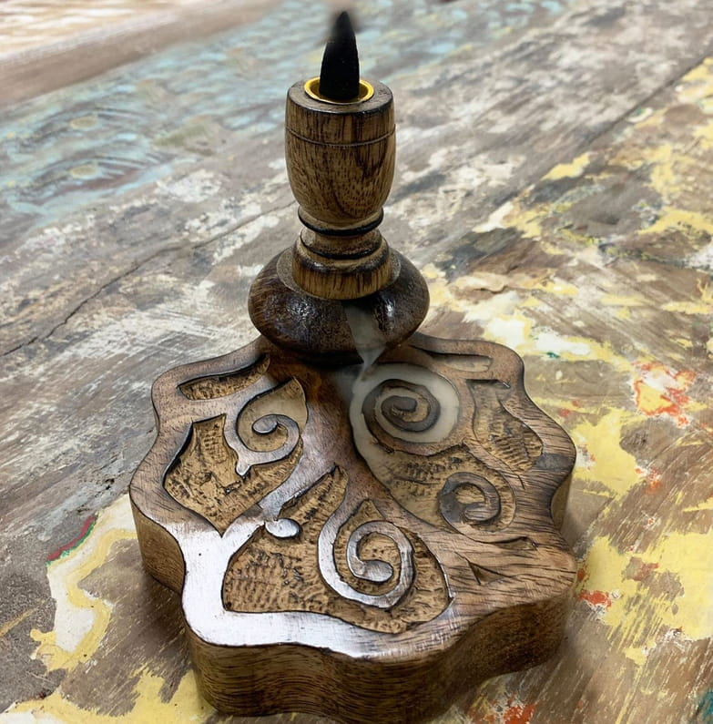 Wystarczy zapalić kadzidełko stożkowe z przepływem zwrotnym, umieścić je na kominku zapachowym, a dym kadzidełka, który jest cięższy od powietrza zacznie spływać w dół po krętych żłobieniach, tworząc niesamowity efekt dla oczu.