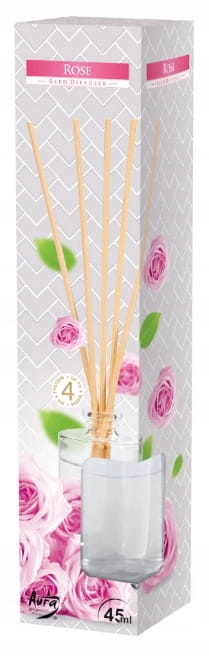 Kolekcja dyfuzorów marki Bispol to 9 unikatowych zapachów zamkniętych w szklanej buteleczce o pojemności 45 ml. Uniwersalny wygląd stanowi doskonały element dekoracyjny każdego wnętrza. Dyfuzor uwalnia różany zapach przez 4 tygodnie, wypełniając pomieszczenie delikatnym aromatem. Zestaw zawiera 5 patyczków ratanowych, dzięki którym możesz regulować intensywność zapachu w zależności od użytej ilości.
