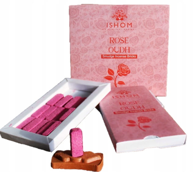 Róża i oud są znane ze swojego wyjątkowego aromatu, który od wieków jest łączony z relaksem i wewnętrznym spokojem. Kadzidełka-cegiełki wypuszczają subtelny, kwiatowy zapach, który tworzy atmosferę pełną harmonii i delikatności.