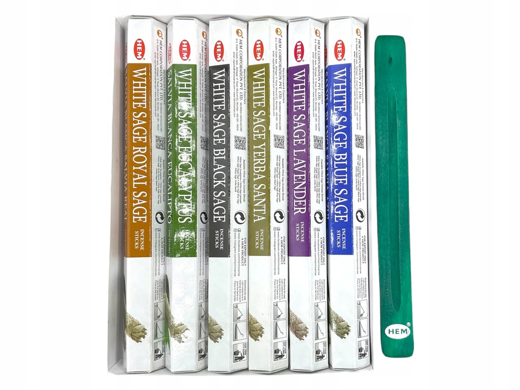 Zestaw Kadzidełek HEM Cleansing Collection – White Sage Blends (6 x 10 szt.) + Podstawka