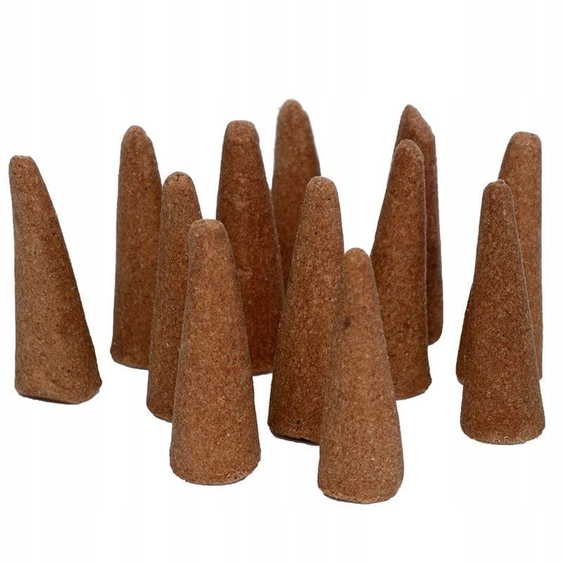 Opakowanie zawiera 12szt stożków oraz mała metalową podstawkę do palenia.