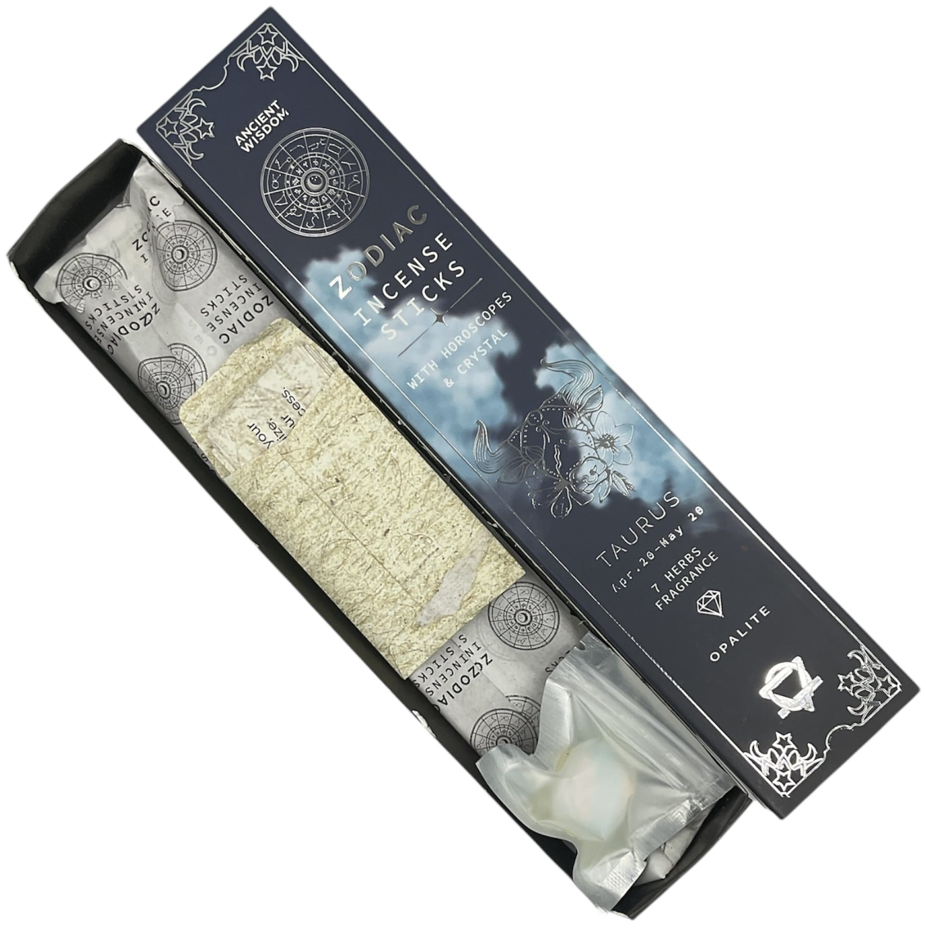 Odkryj kadzidełka stworzone z myślą o Byku – znakach zmysłowych, stabilnych i kochających harmonię. Każde kadzidełko pyłkowe zostało ręcznie wykonane w Indiach i wzbogacone naturalnym kamieniem Opalitu oraz 20 karteczkami horoskopowymi, które wspierają codzienny spokój i równowagę.