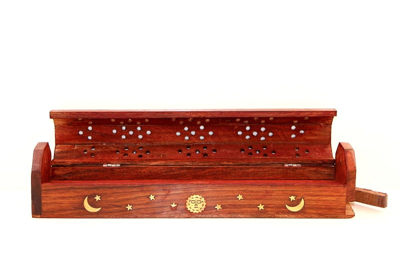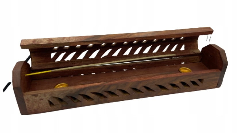 Oryginalny podstawek ręcznie wykonany w Indiach - przeznaczony na export. W środku miejsce na kadzidełka klasyczne oraz na stożkowe.