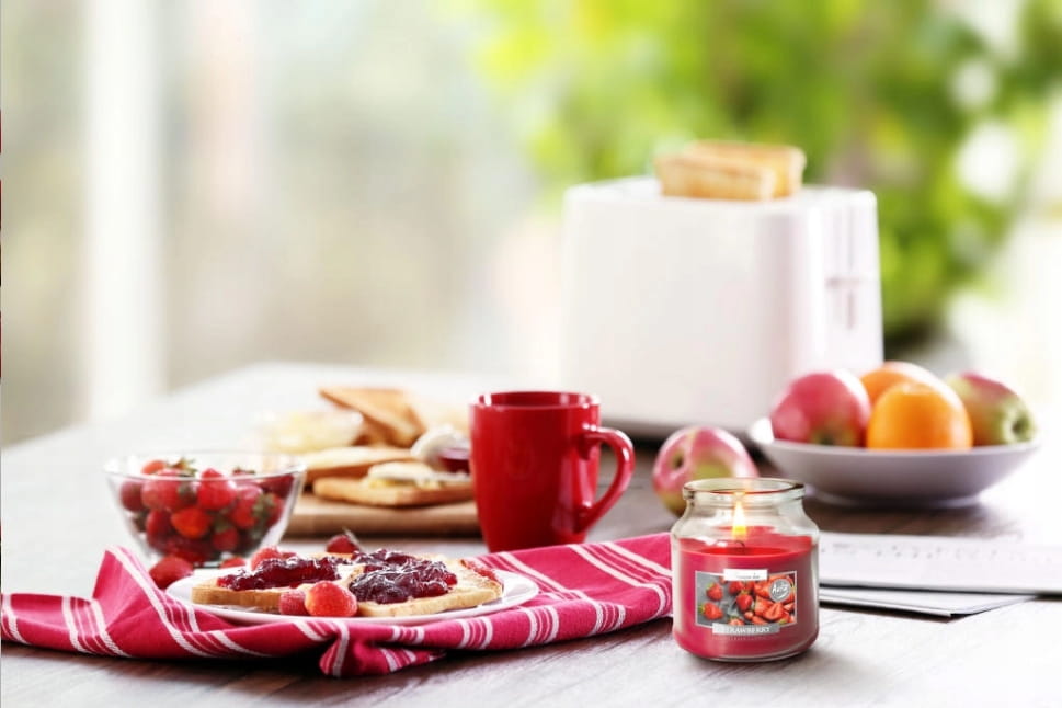 Świeca w szklanym słoiczku z wieczkiem o czasie palenia 28 godzin. Wyjątkowe połączenie akordów owocowych i korzennych. Dzięki szczelnemu zamknięciu zapach pozostaje intensywny w świecy, a po zakończeniu palenia chroni jej powierzchnię przed zanieczyszczeniami.